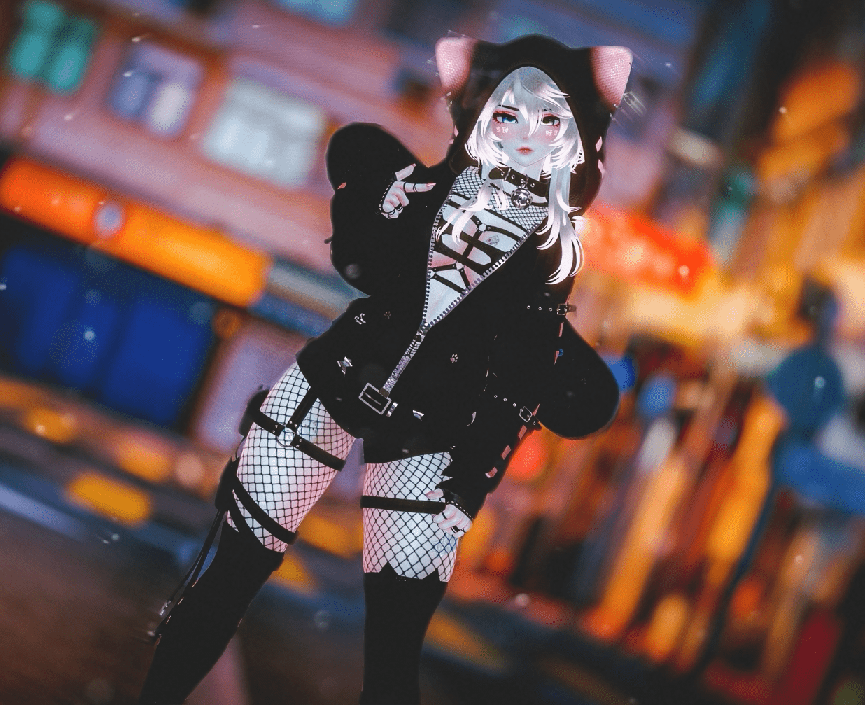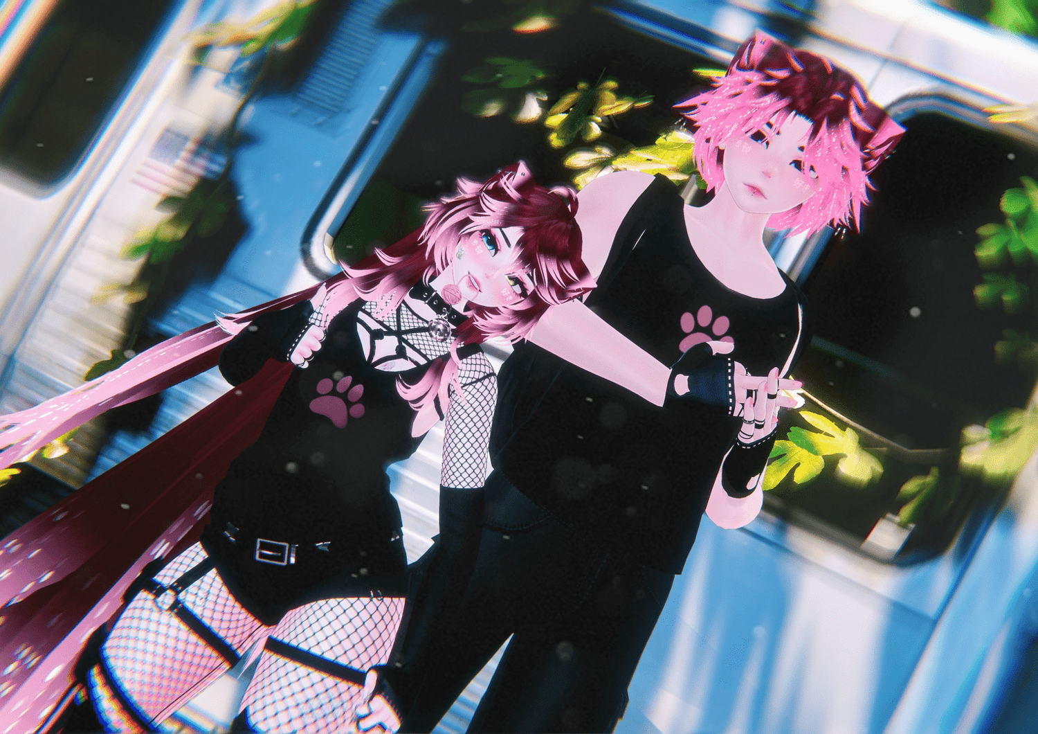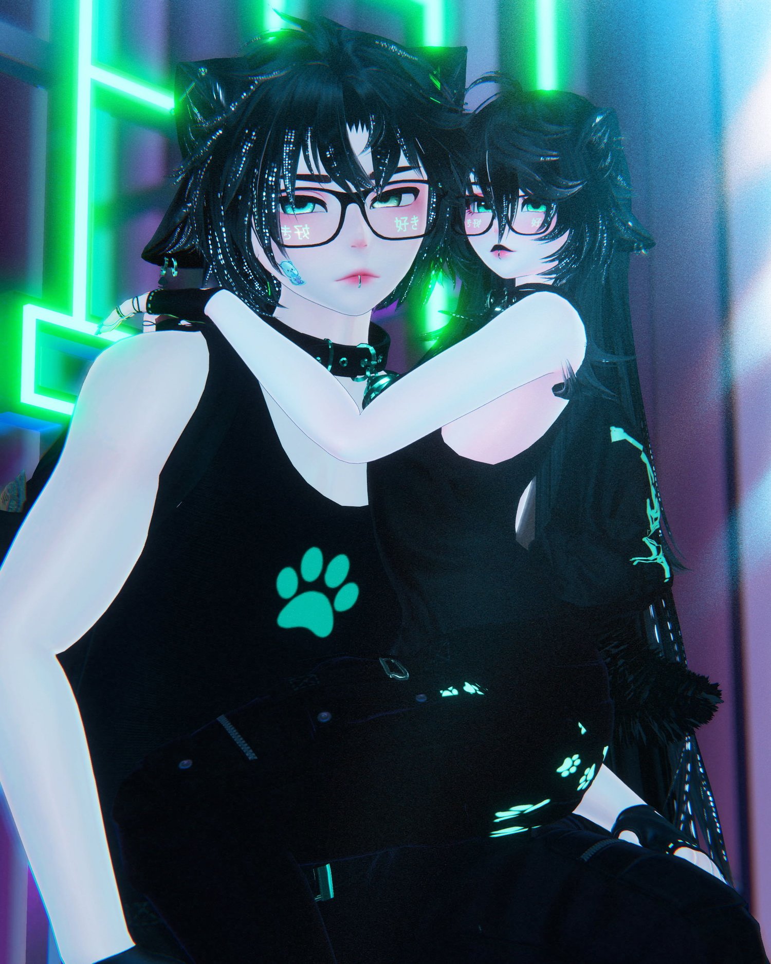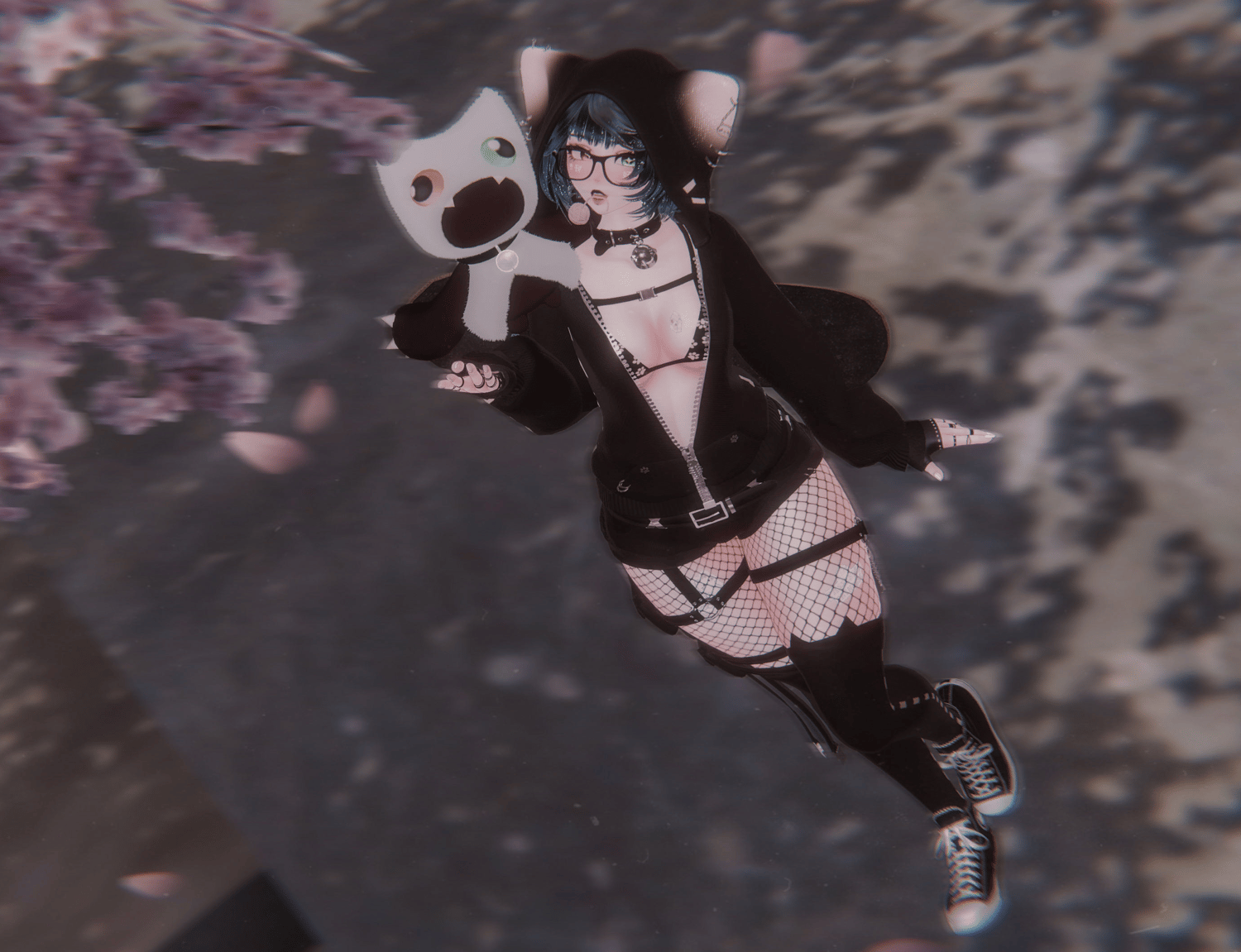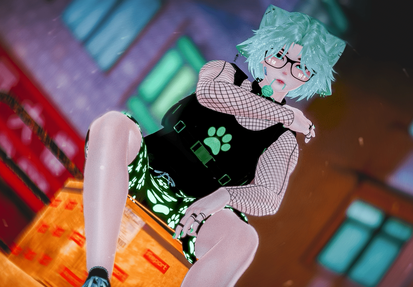 Female Body - Female Body Texture - Female Upper Fishnet - Female Lower Fishnet - Female Arm Warmers - Female Harness - Female Shibari Rope - Male Body - Male Cargo Shorts - Male Harness (taken down) - Head (Heavily edited by me, no re-use) - Eyes - Glasses - Ears - Yarn Ball - Collar - Rings - Backpack - Skateboard - Custom Skateboard Graphic - Catnip & Stickers - Pants - Sneakers - Marker - Follower - Custom Particles - Female PP - Male PP - SPS - Gogo Loco - Shaders