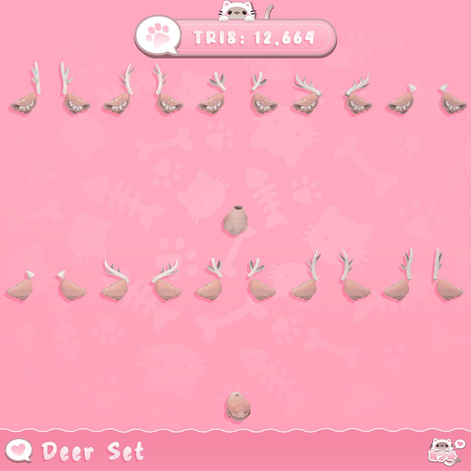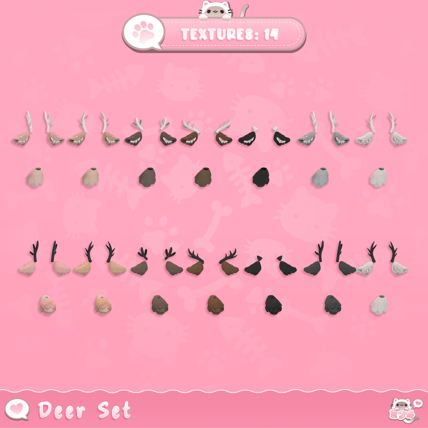 - 14 (Tan, Pink, Brown, Dark Brown, Black, White) (Black or White Antlers)